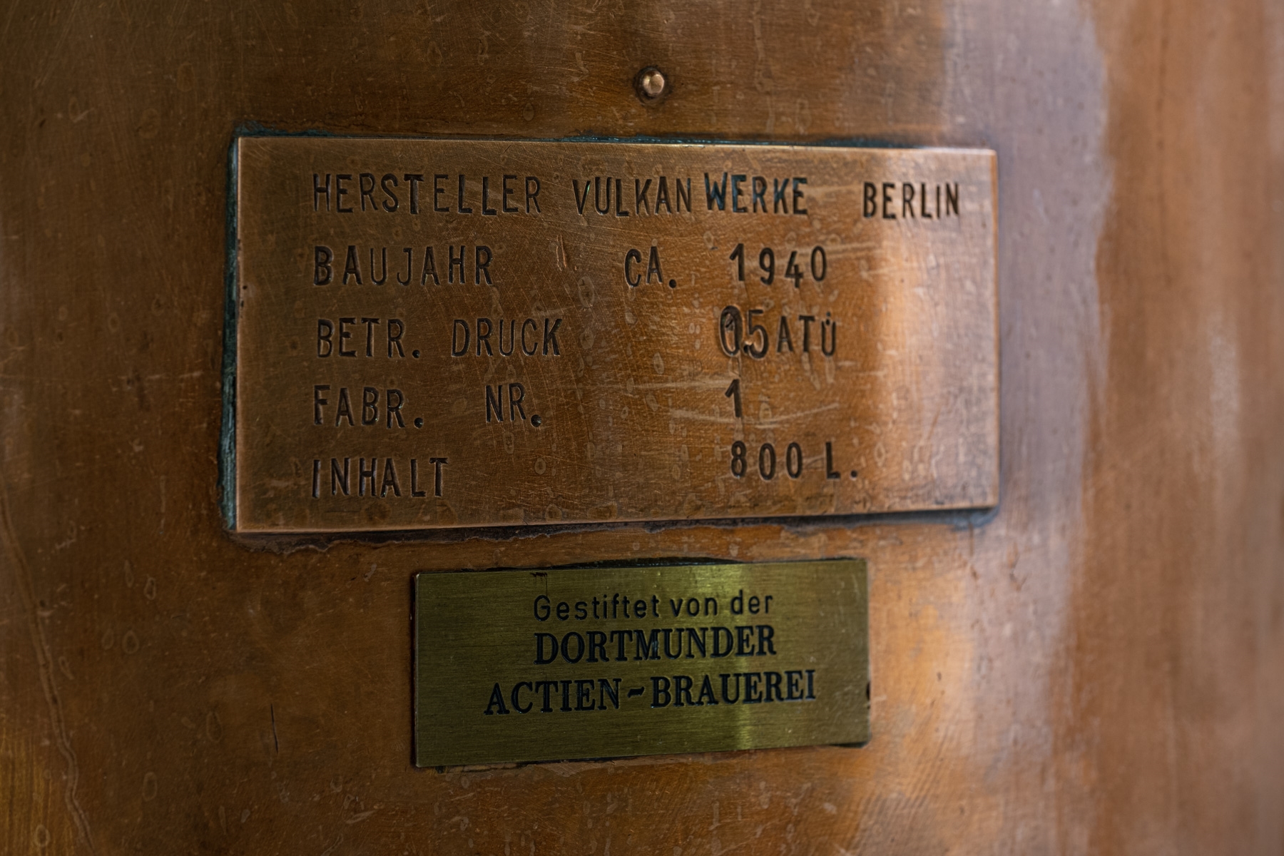 Schilder an einem Kupferkessel