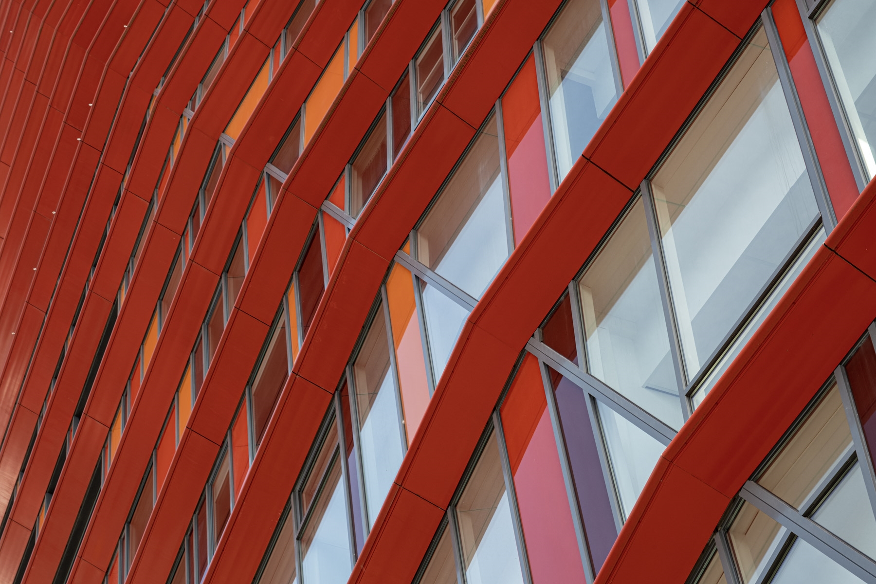 Rote Fassade eines Hochhauses