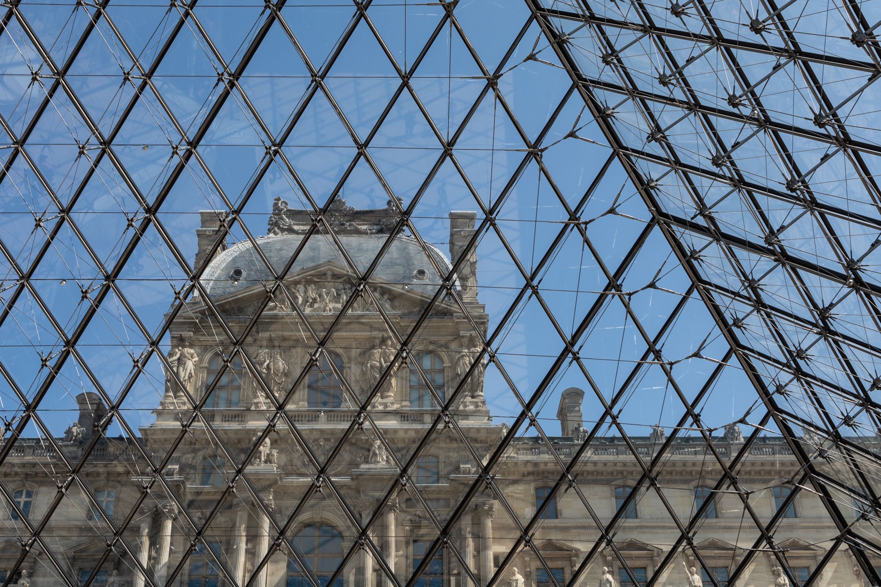 Blick von innen durch dasGlasdach des Louvre