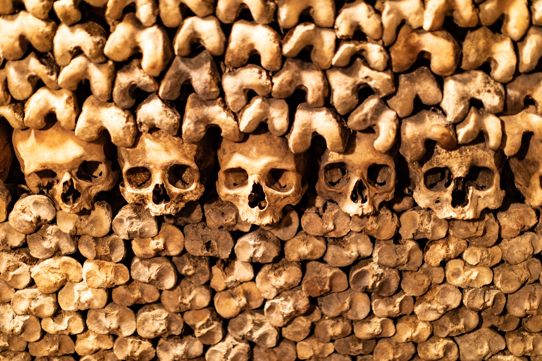 Gestapelte Knochen in denKatakomben von Paris