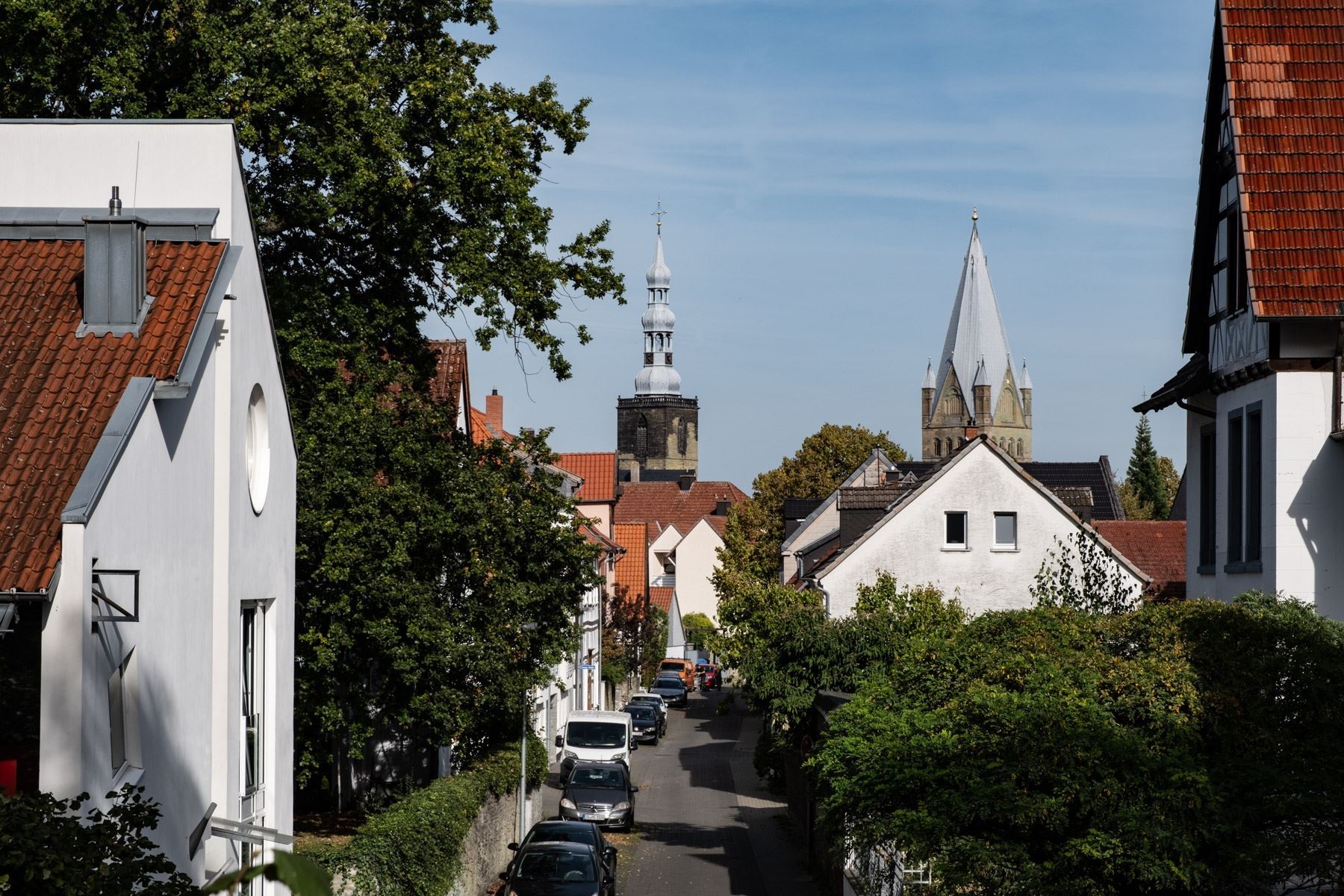Blick durch die Kesselstraße aufSt.Patrokli-Dom und St. Petrikirche