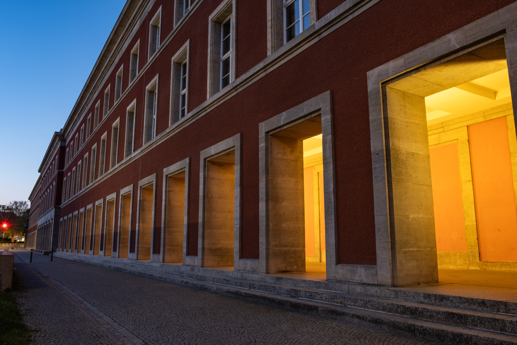 Beleuchtete Arkaden des Thüringer Landesamt