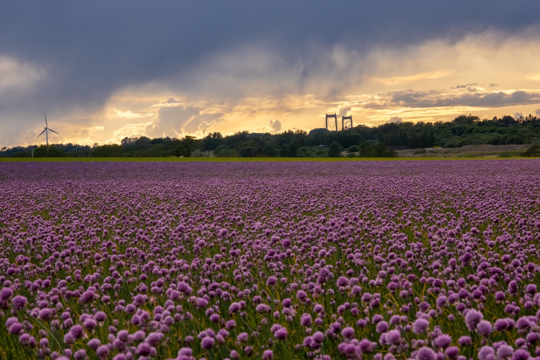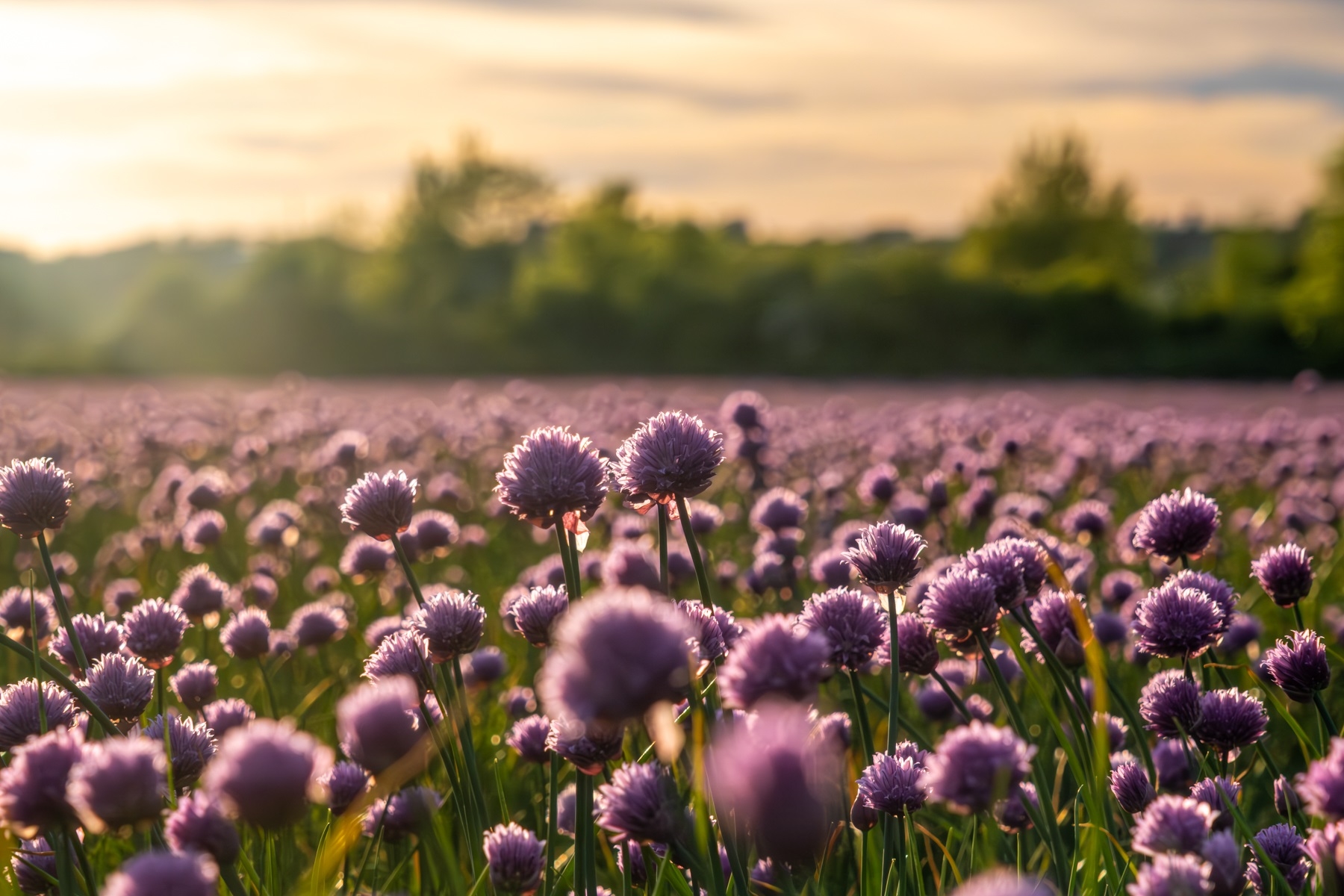 Schnittlauchfeld im Sonnenuntergang in Middelfart