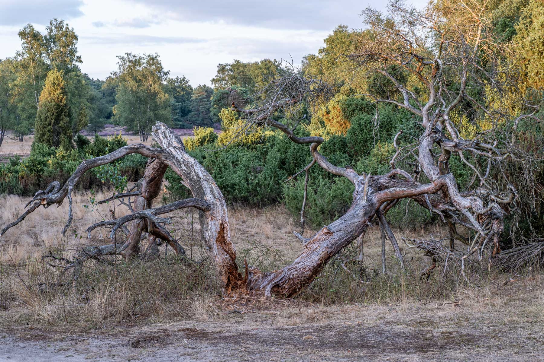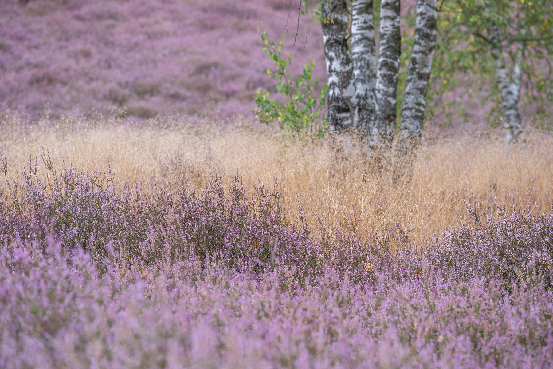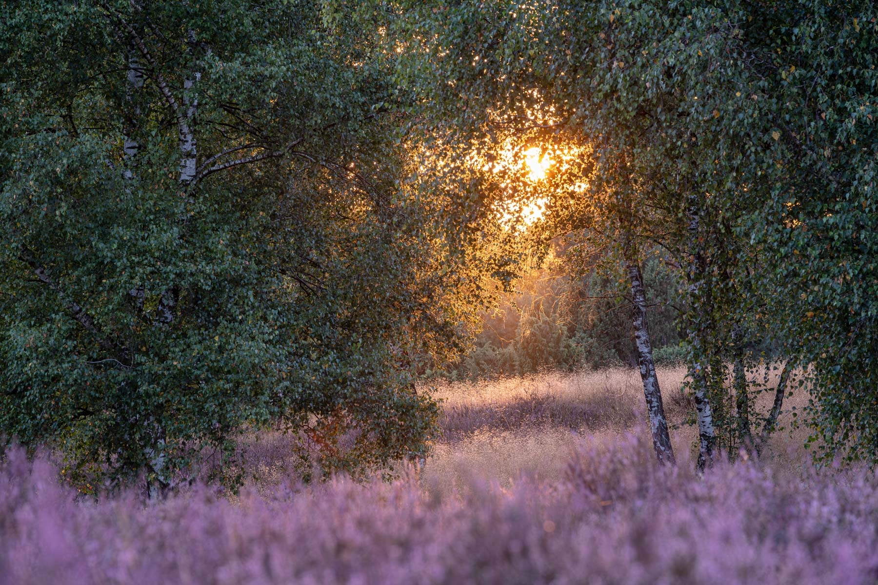 Abendlicht zwischen Birken und Heide
